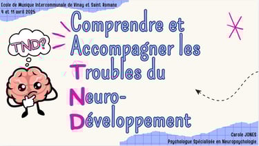 Sensibilisation d'une équipe enseignante - école de musique intercommunale, aux Troubles du Neuro-Développement (TND)