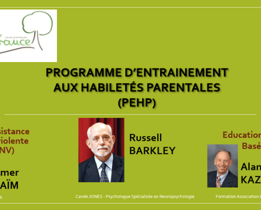 "Sensibilisation aux stratégies éducatives De R. Barkley, enrichies des stratégies d'Education Positive Basées sur les Preuves d'A. Kazdin, et de Résistance Non-Violence d'O. Haïm"