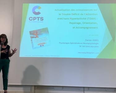 "Je suis très heureuse d'avoir pu présenter une actualisation des données sur le TDAH à des professionnels de santé et de la petite enfance. J'espère avoir pu déconstruire quelques idées reçues sur ce trouble complexe et fascinant, et ainsi permettre un meilleur accompagnement des personnes avec un TDAH sur notre territoire."